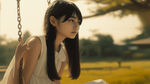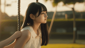 ▼ブランコに座る女の子の手が、完全にホラー。